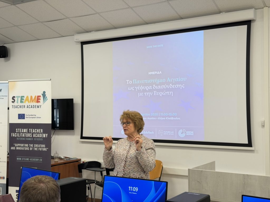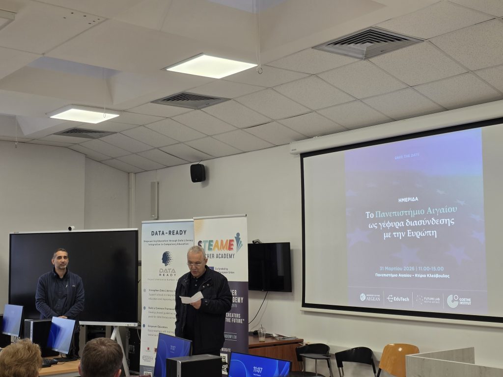 Με μεγάλη επιτυχία και σημαντική προσέλευση πραγματοποιήθηκε την Τρίτη 31 Μαρτίου 2026 στο Πανεπιστήμιο Αιγαίου (Κτίριο Κλεόβουλος, Ρόδος) η ημερίδα με τίτλο «Το Πανεπιστήμιο Αιγαίου ως γέφυρα διασύνδεσης με την Ευρώπη» .